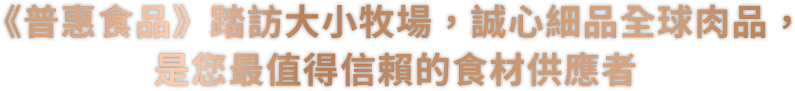 我們不只為了品質(zhì)不畏困難的走訪全球大小農(nóng)牧場!我們更擁有著強(qiáng)大的貿(mào)易團(tuán)隊(duì)提供您最專業(yè)的國際肉品價(jià)格走勢的分析讓您不必再畏懼市場的起伏不定!而我們的專業(yè)與35年來對(duì)品質(zhì)的堅(jiān)持,更使我們成為國際肉品大廠指定的代理商。